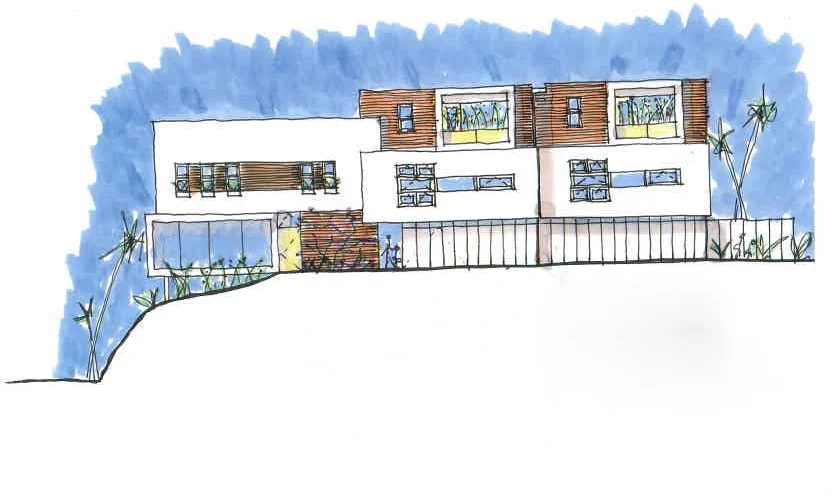 This lot was considered un-buildable due to its steepness and geological problems. Ramer Architecture designed this 3 unit condominium concept to overcome the site constraints and feature hillside views of San Pedro Harbor. The intent was to sell the property with the plans packaged together as a build-to-suit option.
